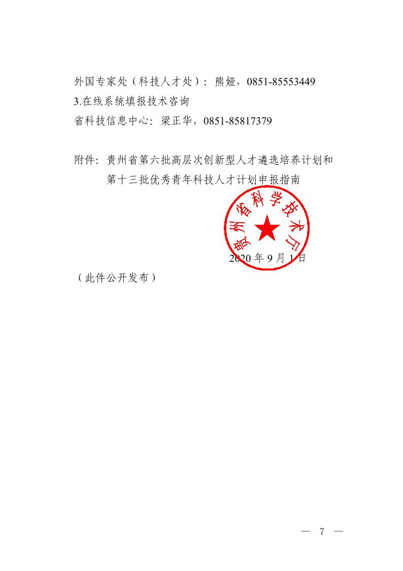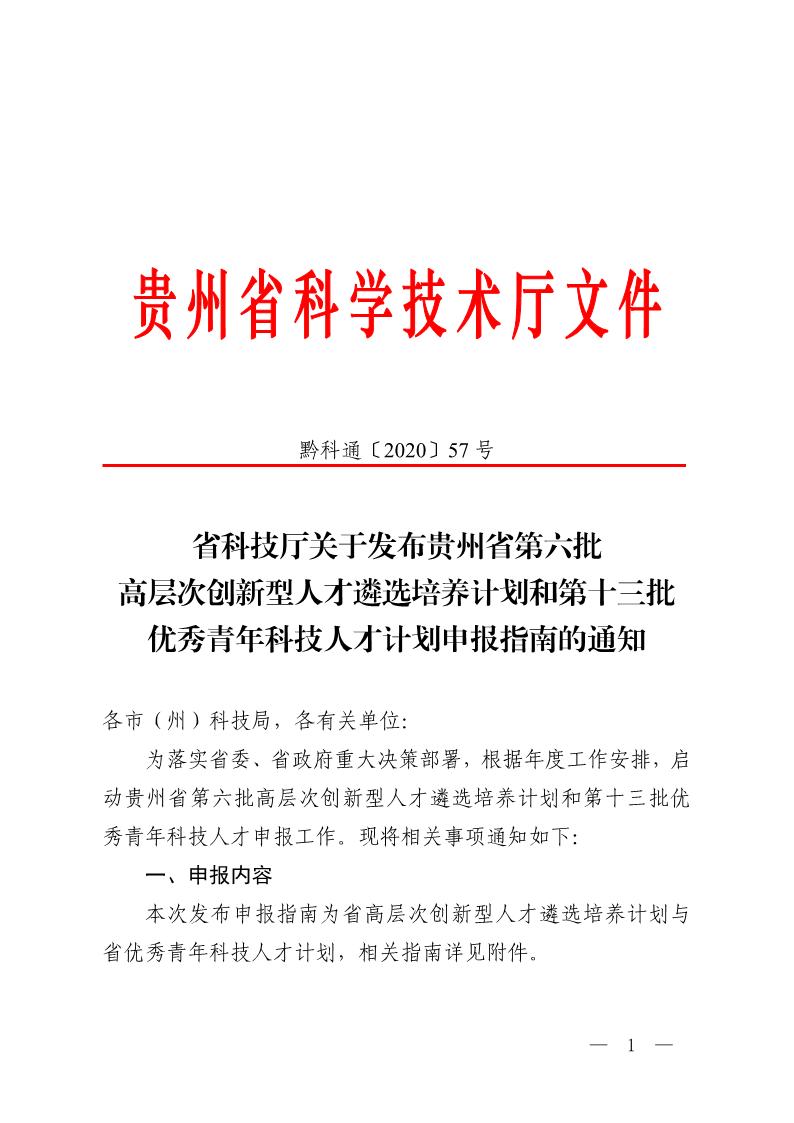 附件:贵州省第六批高层次创新型人才遴选培养计划和第十三批优秀青年科技人才计划申报指南.doc