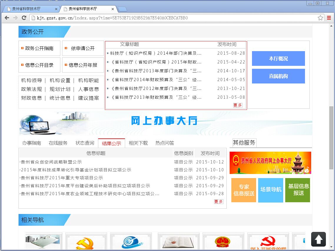 门户网站公开,并对网站不断进行维护、调整和更新。二是热情接待来电或来访的社会公众,及时回答咨询问题。三是及时组织采编科技信息和新闻宣传稿,通过各类新闻媒体宣传报道科技工作,发布科技信息。四是开通官方微博微信,进一步扩大信息公开和科技宣传渠道。五是向省政府、科技部报送公开政务信息,同时加入“政府电子云”的维护和管理,安排专人对贵州省电子政务网科技厅门户网站进行信息的更新、完善。